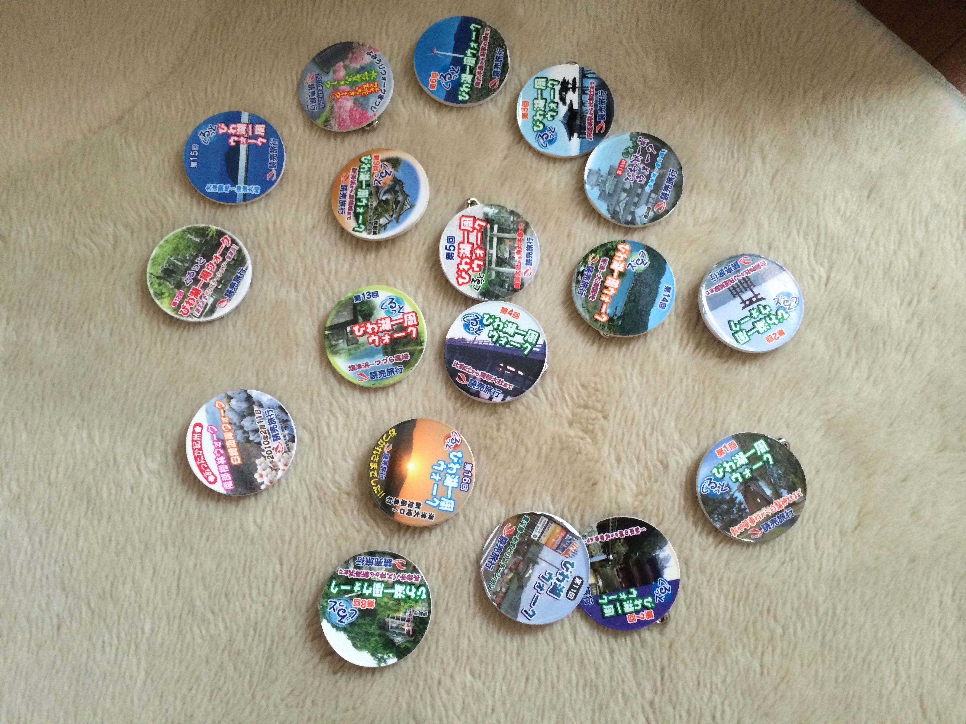 現在はサイトが見つかりませんでしたが、同じようなもので琵琶湖ウオークも実施されてました。これも下記のようなバッジが区間毎にもらえてこれもある程度の期間で徒破する。