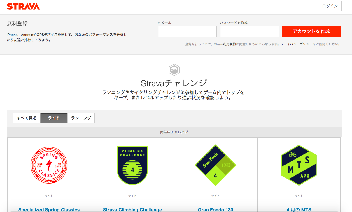サイクリングやランニングをスマートフォンでトラッキングして、様々なバーチャルな競技会(チャレンジ)が用意されております。これとは別ですが