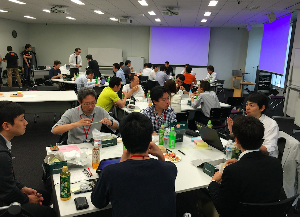 コトの共創ラボの取組の一つとしてニフティさんのスマートサーブを題材にスマートホームの戦略そのものを社外の様々な分野の有識者メンバーとディスカッションするストラテジアソン(Strategy-a-thon:戦略とマラソンを掛けた造語)を2015年5月16日(土)にニフティさんの本社で開催しました。10:00〜17:00という長丁場のディスカッションになります。