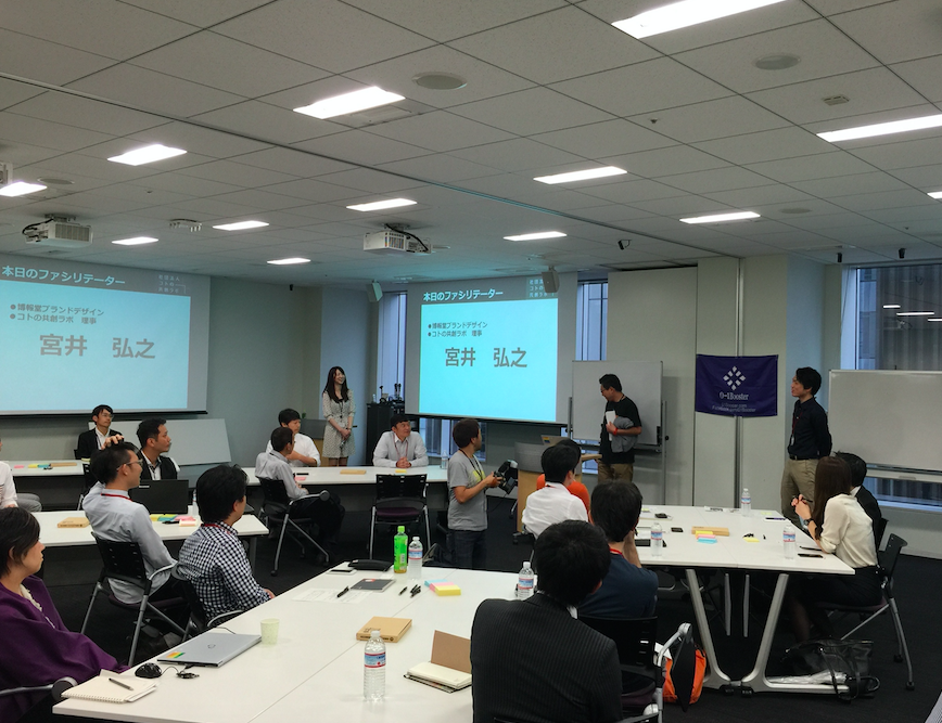昼食後は博報堂の宮井さんのファシリテーションが再開。今度は次のテーマに関して全員に説明します。 いくつか、博報堂で培ったテクニックもご披露頂きました。第一弾のワークは少しライトなテーマです。