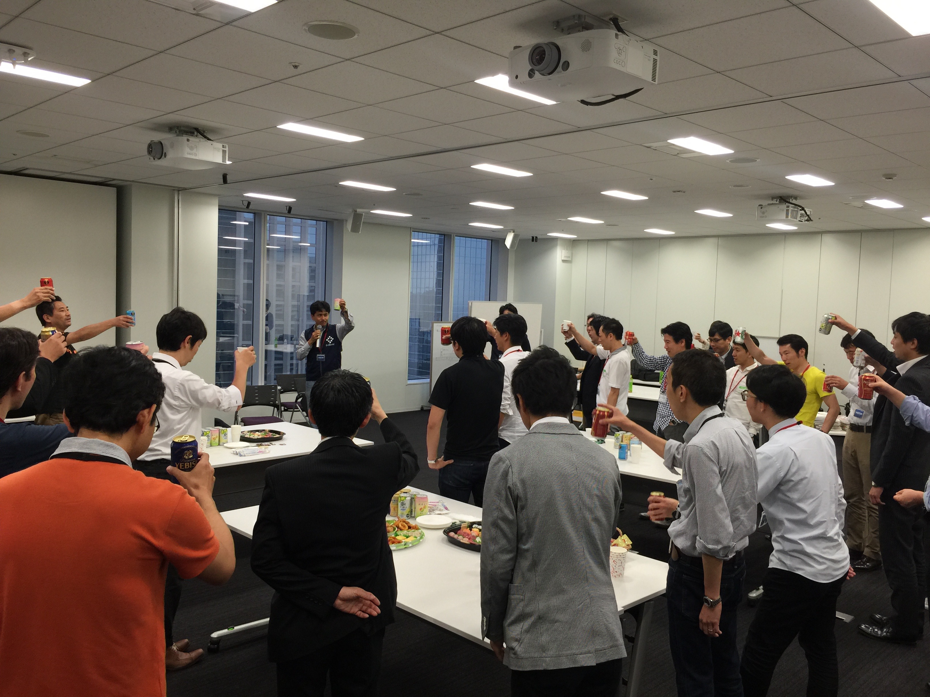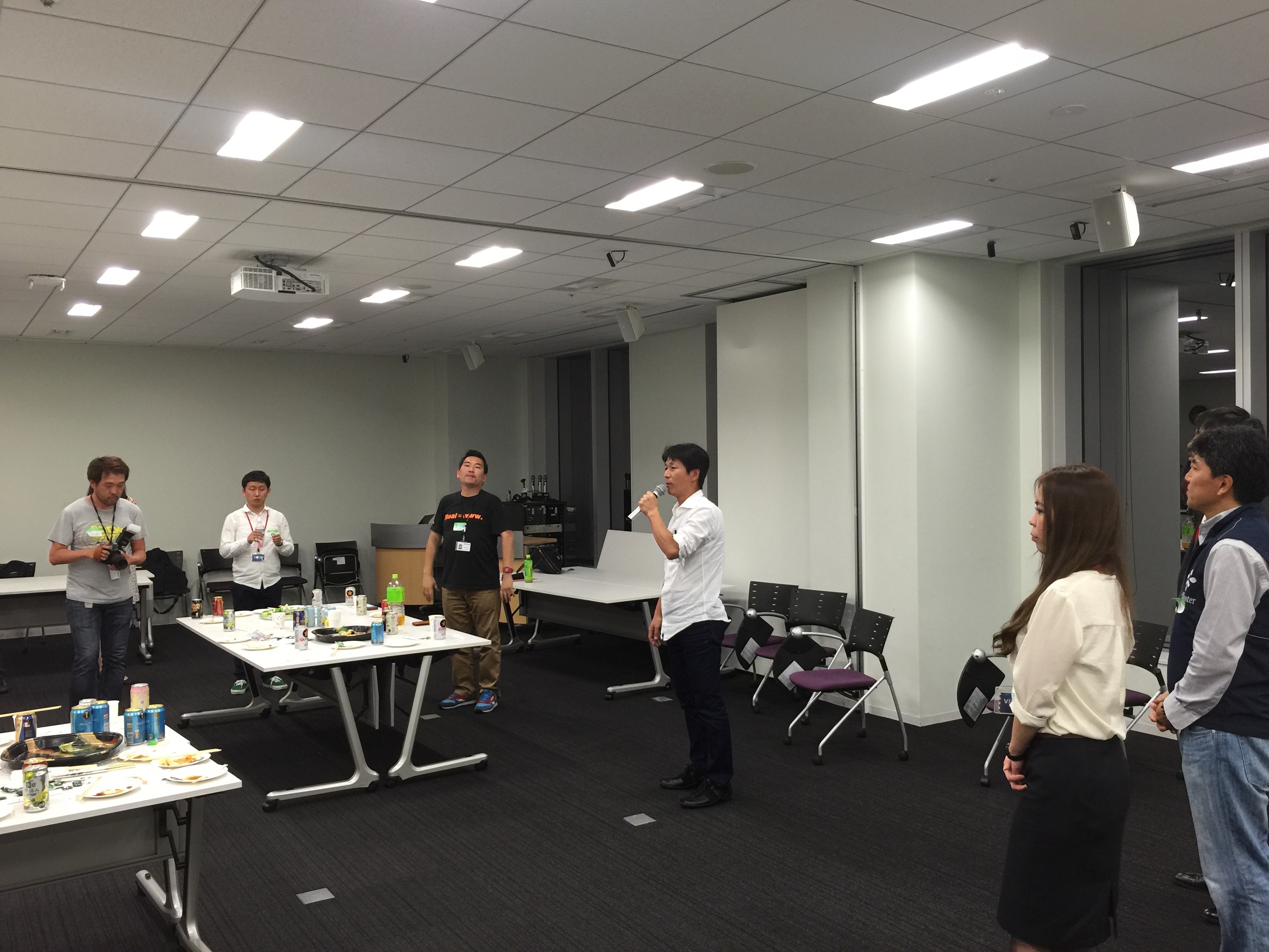 さて、その後はお決まりの懇親会!01Boosterの代表の鈴木の挨拶で乾杯です。