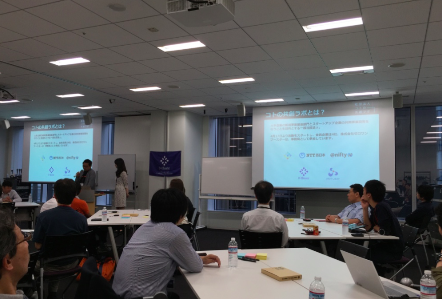 まずは、コトの共創ラボに関しての説明をニフティさんからして頂きました。日本型のオープンイノベーションをベースに日本の事業創造の場を暖めていくのが大きな役割です。日本にも事業創造への大きなうねりがあることは事実です。