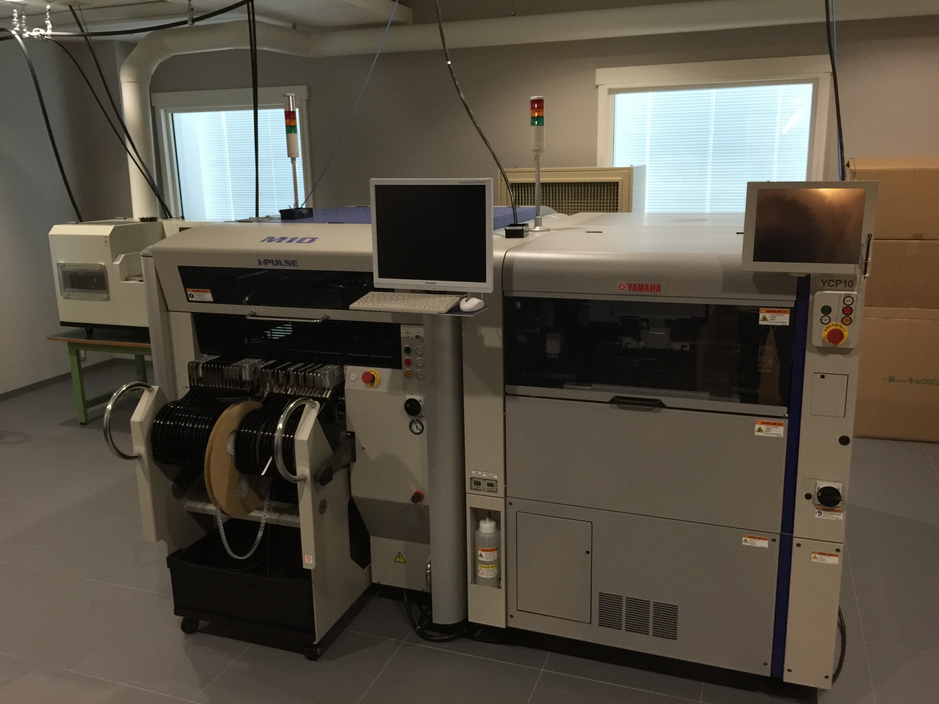 圧巻はマウンターとリフロー炉!この時点で電機メーカー出身の二名(山本さん+George)が興奮状態に。