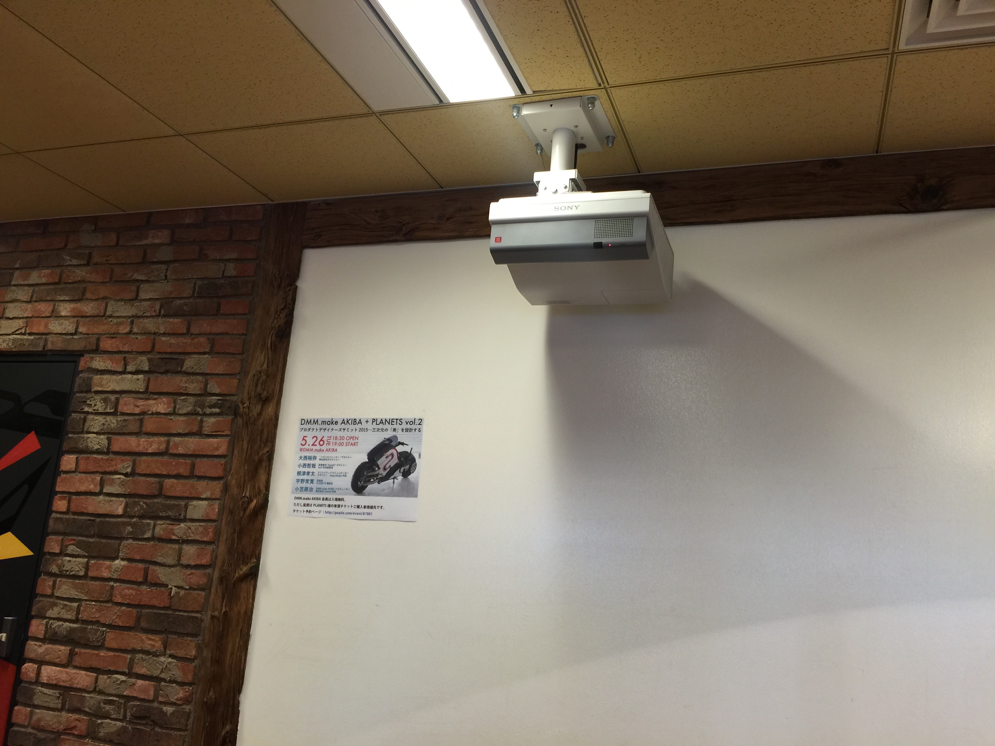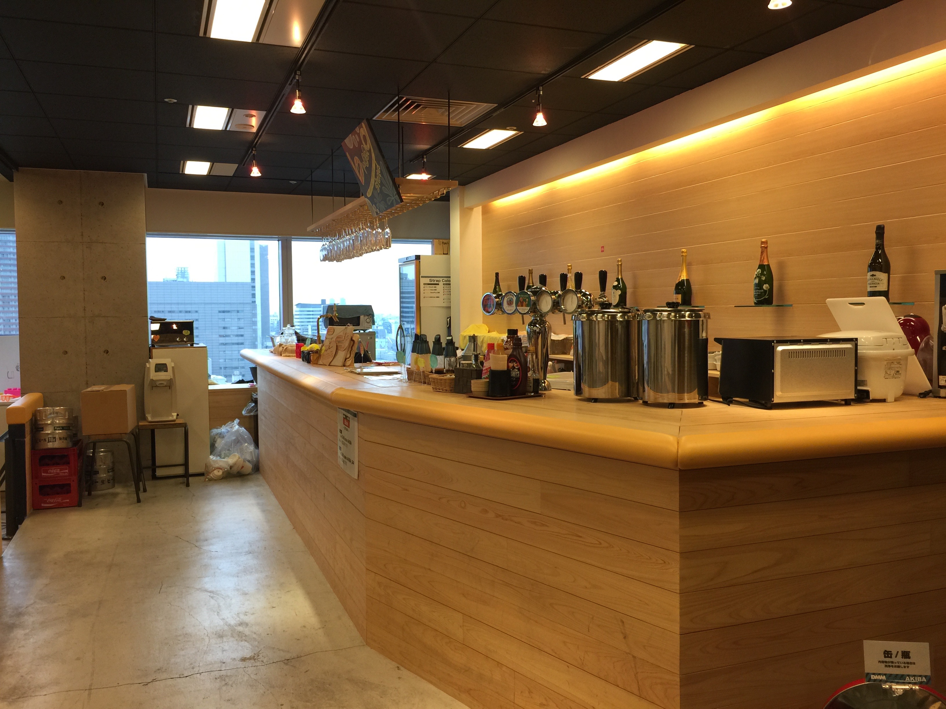 コワーキングのところは入居者も沢山いらっしゃるので写真を撮れなかったんですが、バーもあり、短焦点プロジェクタがずらっと並んでました。