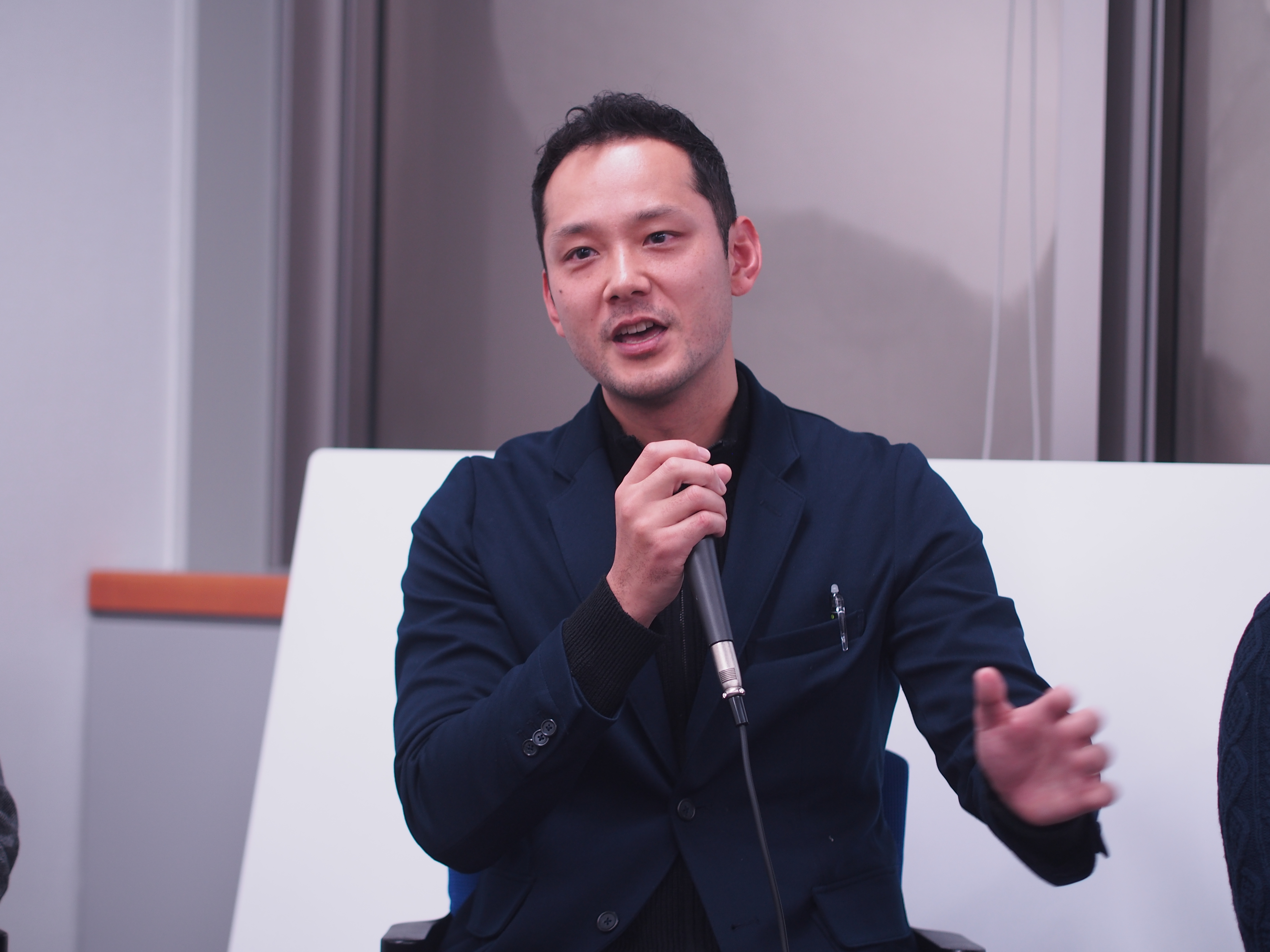 池田さん(TRAVEE代表)、佐々木さん(AnotherShotGolf代表)、若泉さん(ウィルグループシェアハウス部 部長)の3名です。3名とも「今まさに闘っている」というところです。
