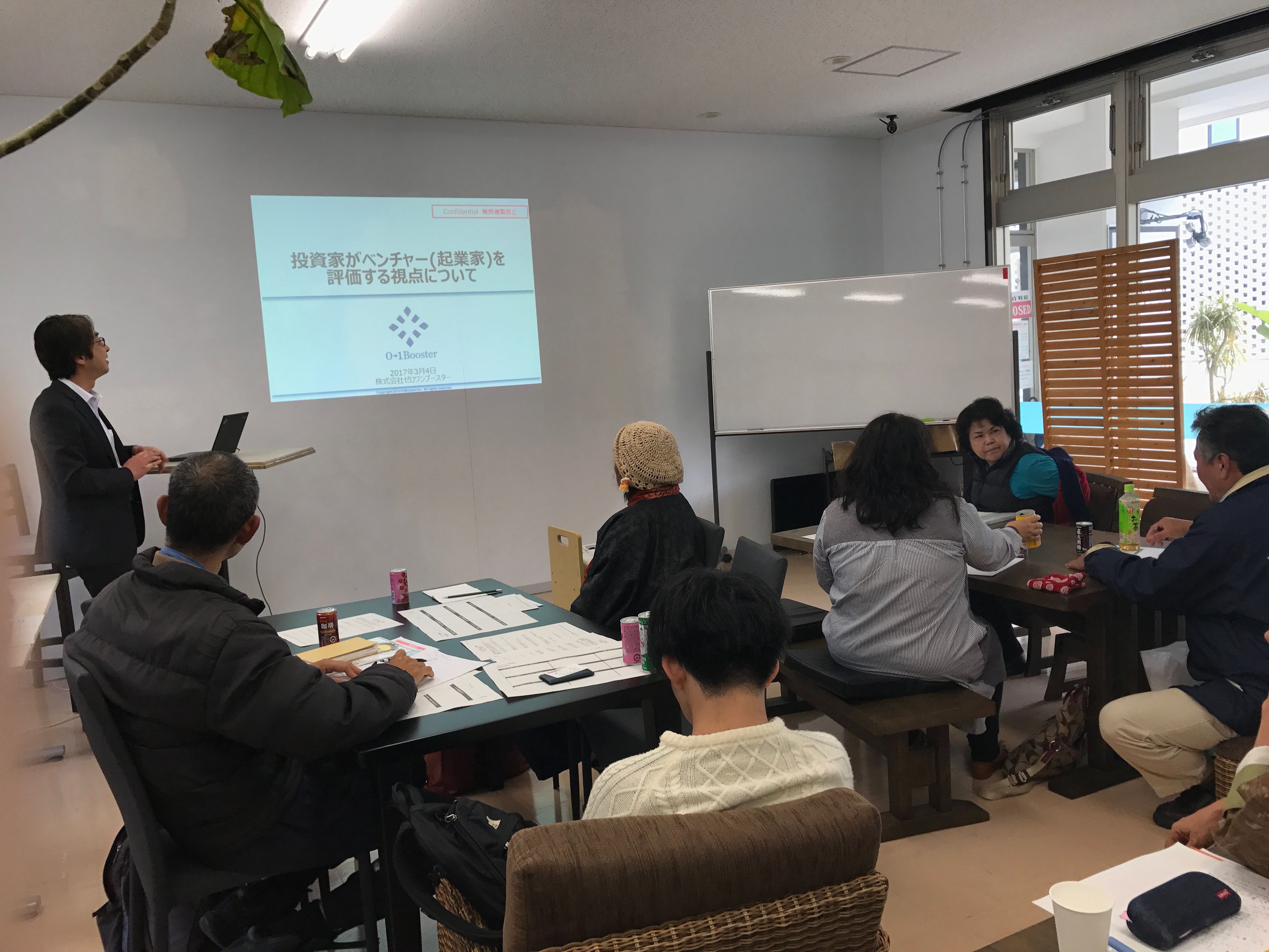今回はビジネスプランのブラッシュアップに加え世界観の話と資本政策のお話を01Boosterから、そして、Skype経由で東京からリベルタの澤野CEOと宮崎から商工会議所の杉田さんにお話を頂戴しました。お二人には大感謝です。ここにStartup Dojo 沖縄のDay5の模様をまとめておきます。